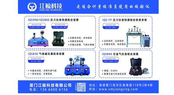 丈量未来,精准前行——江鲸科技于2026年在《中国计量》杂志社发布产品广告,此次主要宣传:IQS800便携式(IQS900实验室)压力仪表快速检定装置、IQS-FP压力仪表快速检定校准系统、IQS830气体减压器...